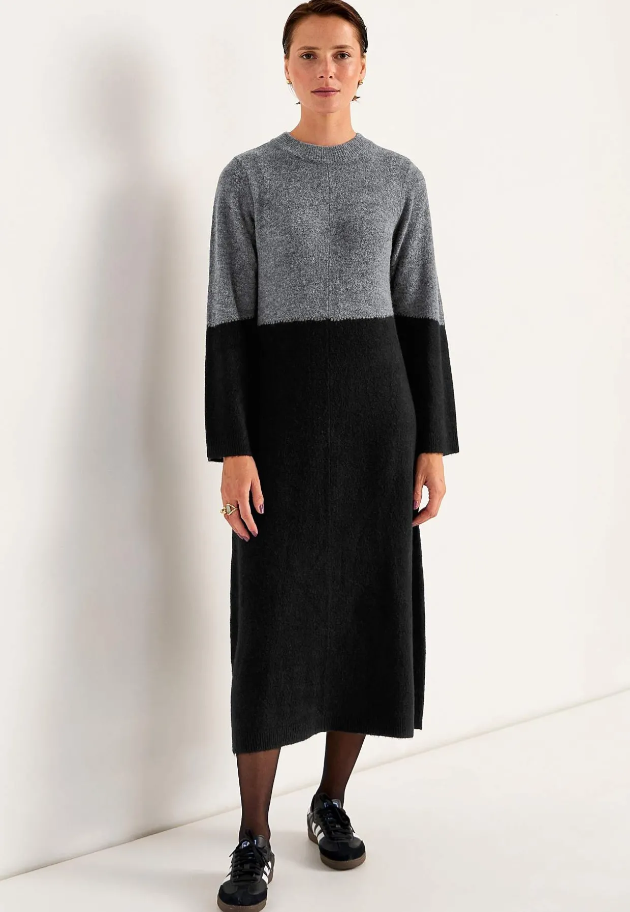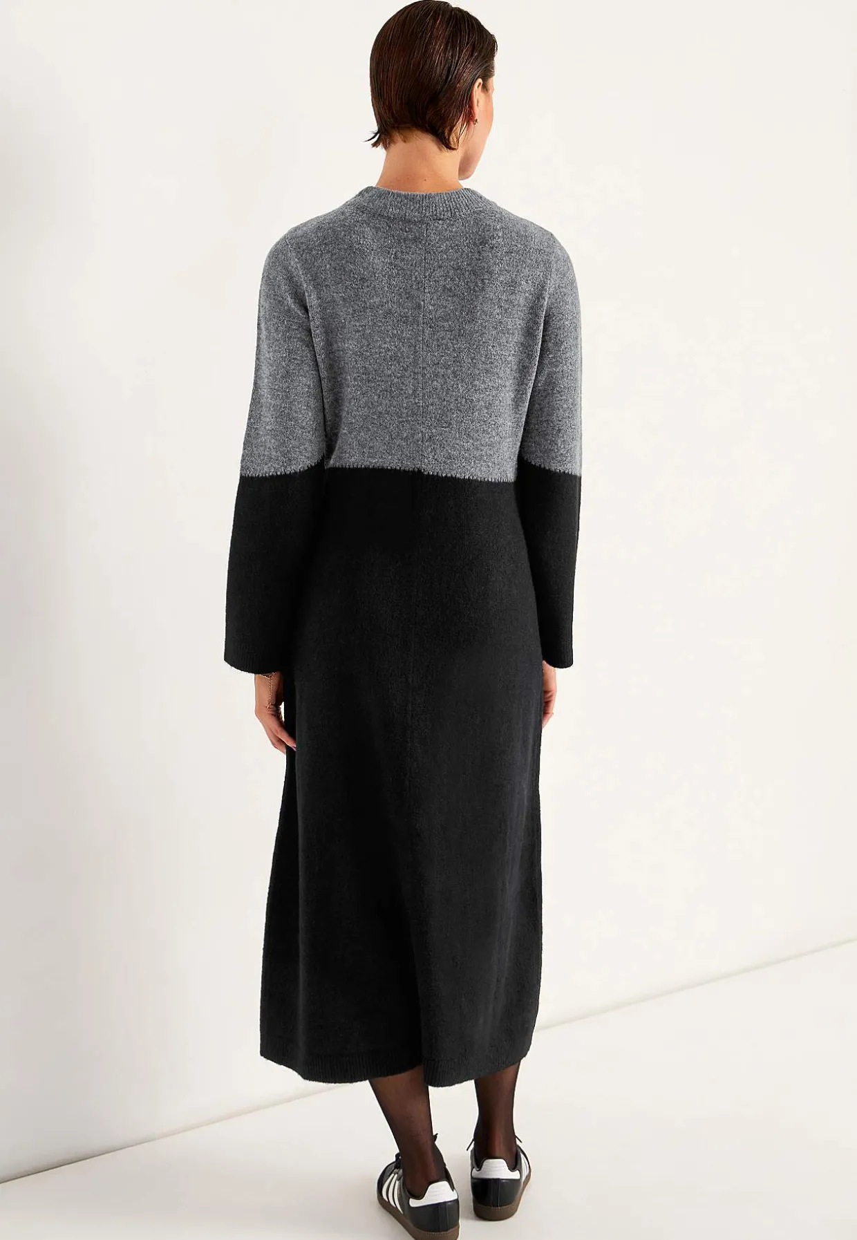 • Klassisk afrundet krave med ribstrikket ribkant.