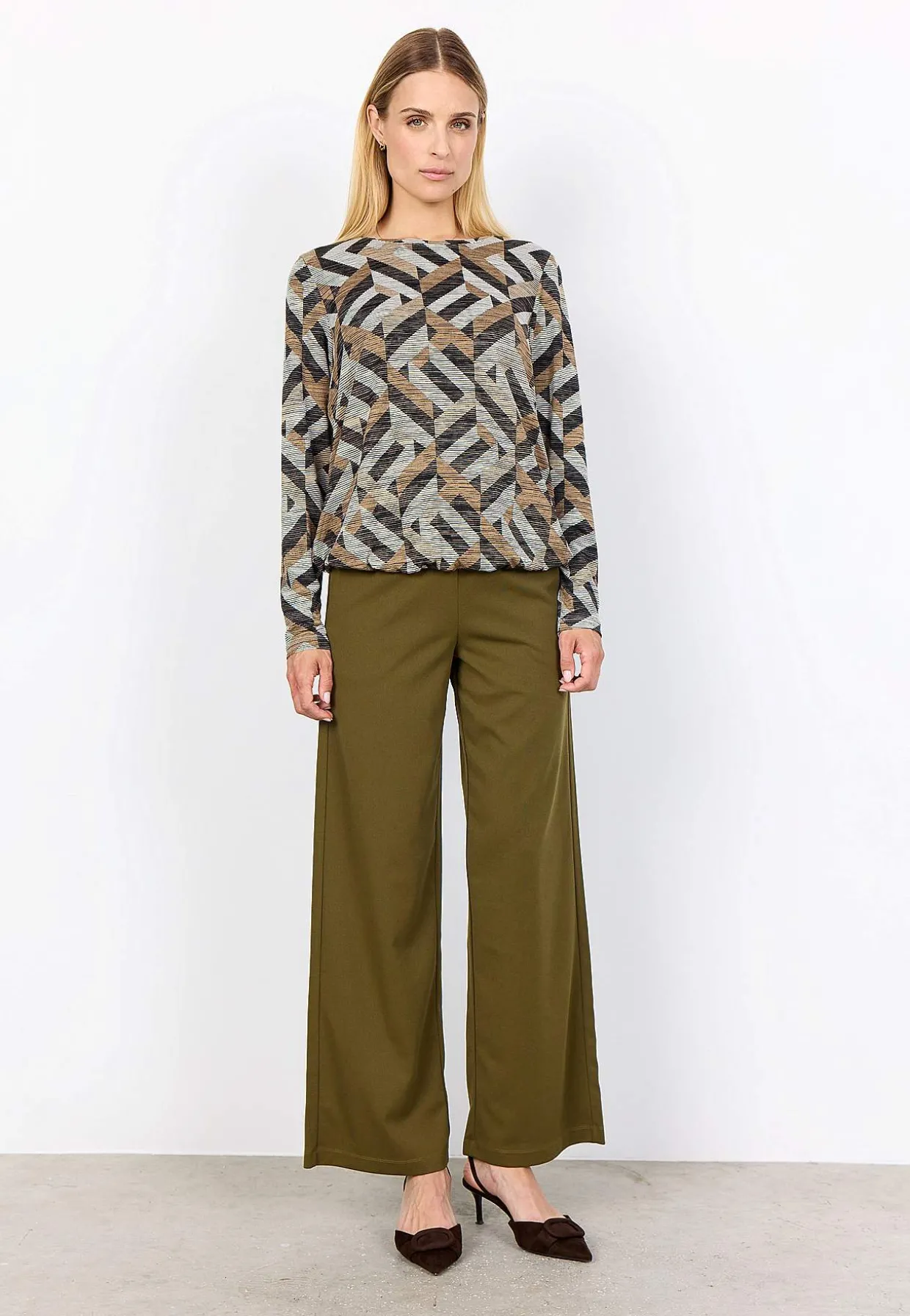 • Mønster med en grafik og jordnære farvetoner.