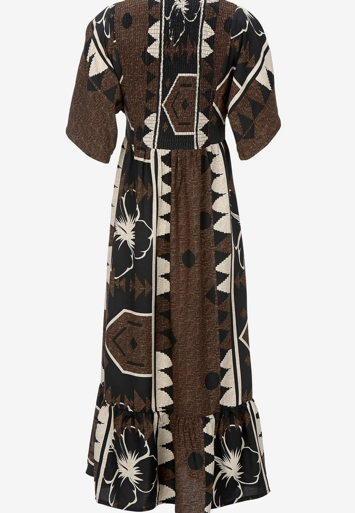 • Vævet kjole i jævn viskose med et abstrakt mønster.