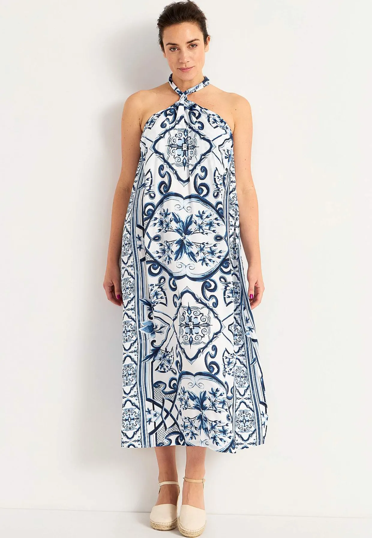 • Høj halsudskæring med snoet halterneckdesign.
