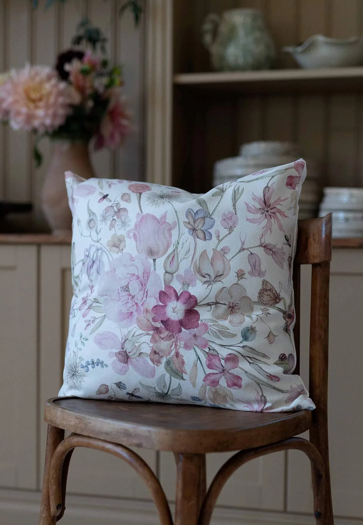 • Pudebetræk med blomster og sommerfugle.