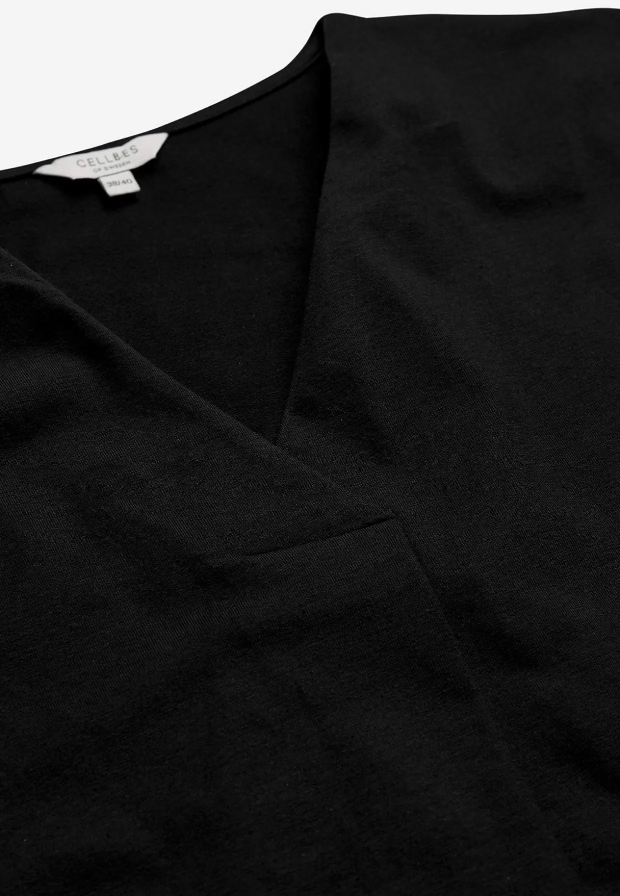 • Overlappet v-hals med flatterende læg foran.
