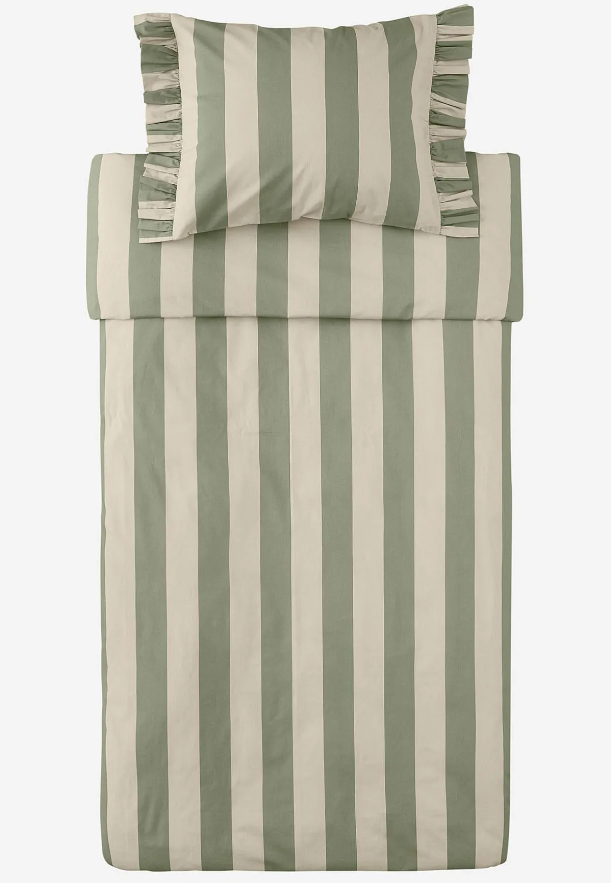 • Dynebetræk størrelse 150×210 cm, pudebetræk 50×60 cm + 8 cm volant på hver korte side.
