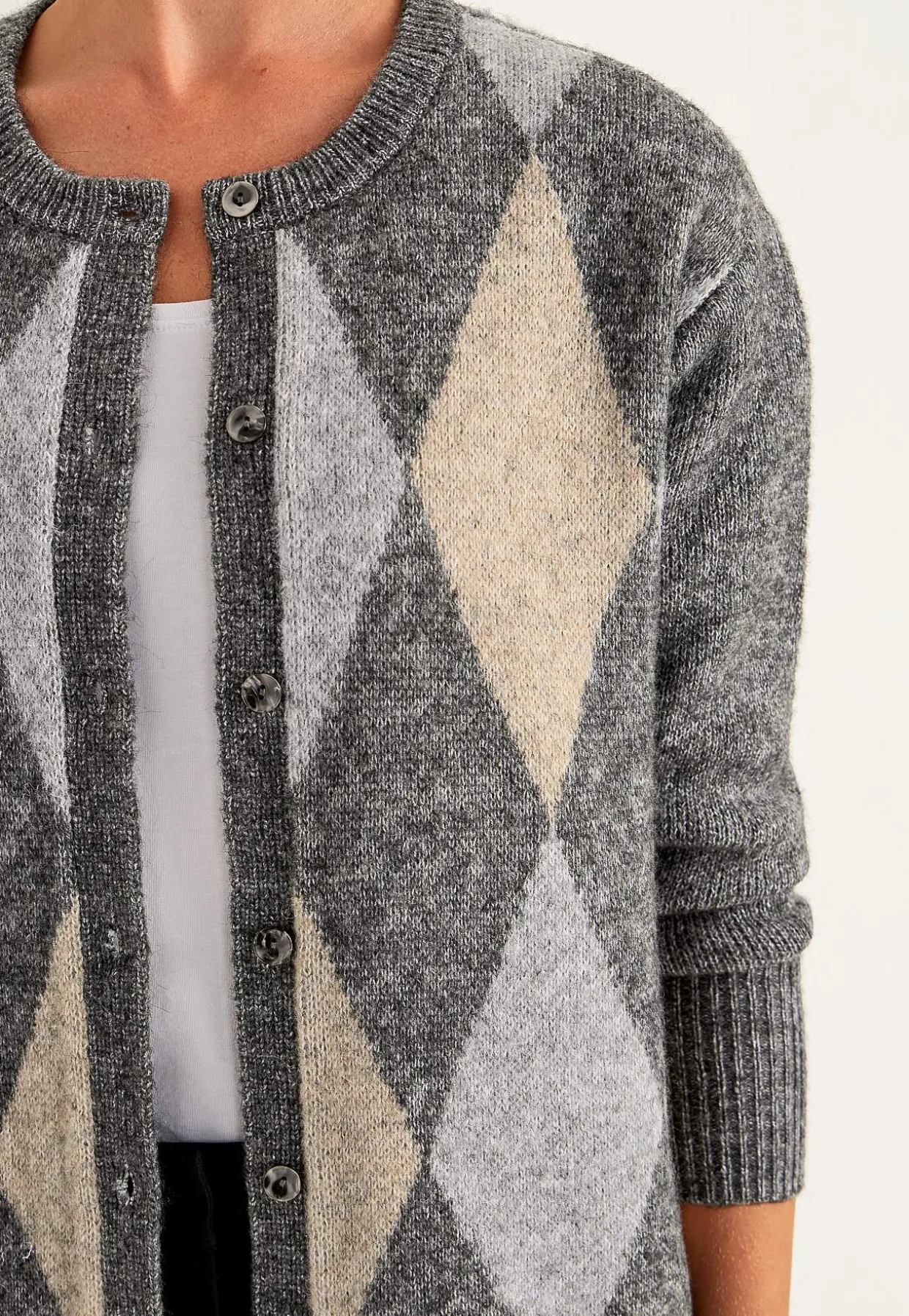 • Rund hals med ribstrikket kant.