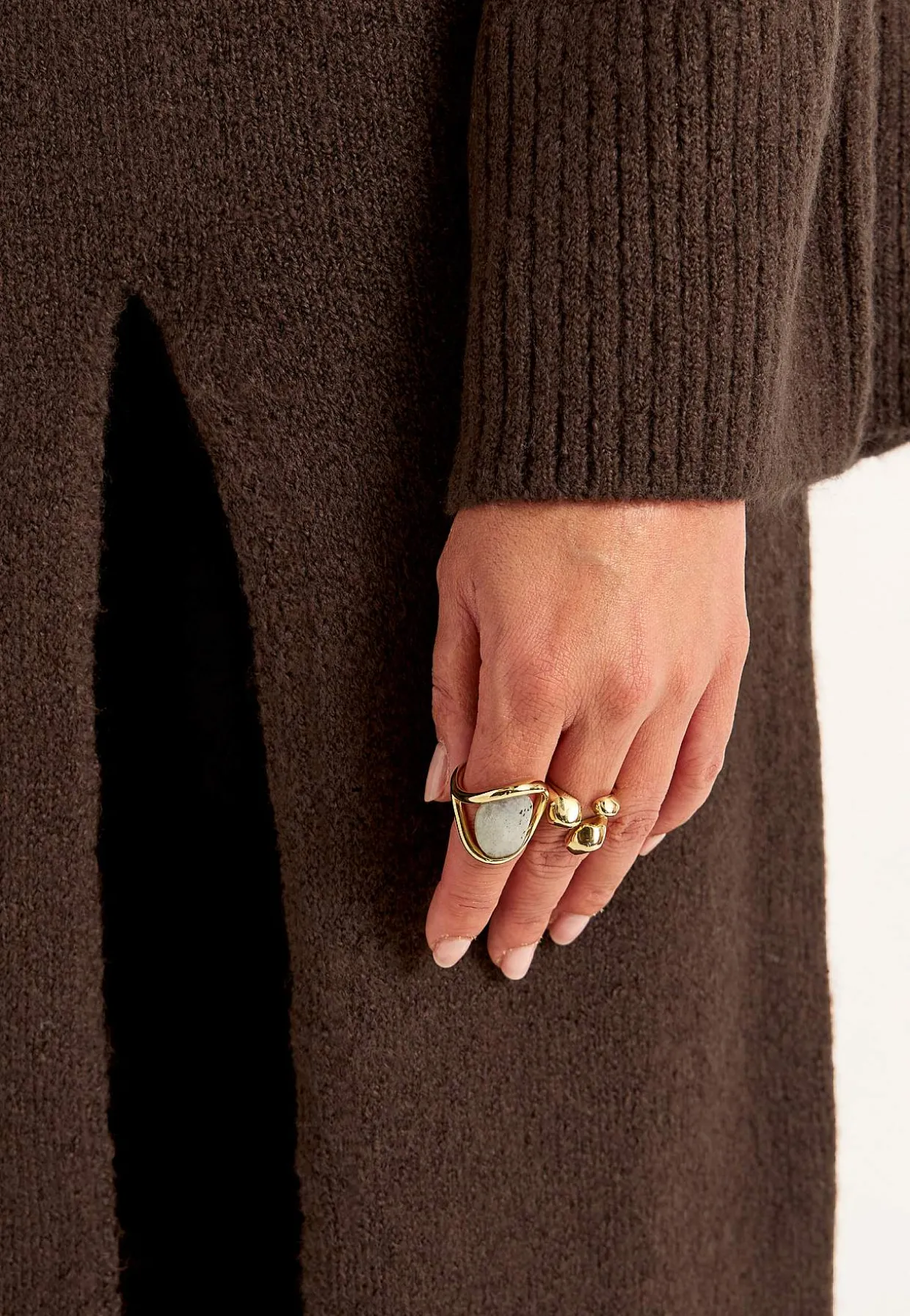 • 3/4 lange, brede ærmer med bred ribmanchet ved manchetterne.