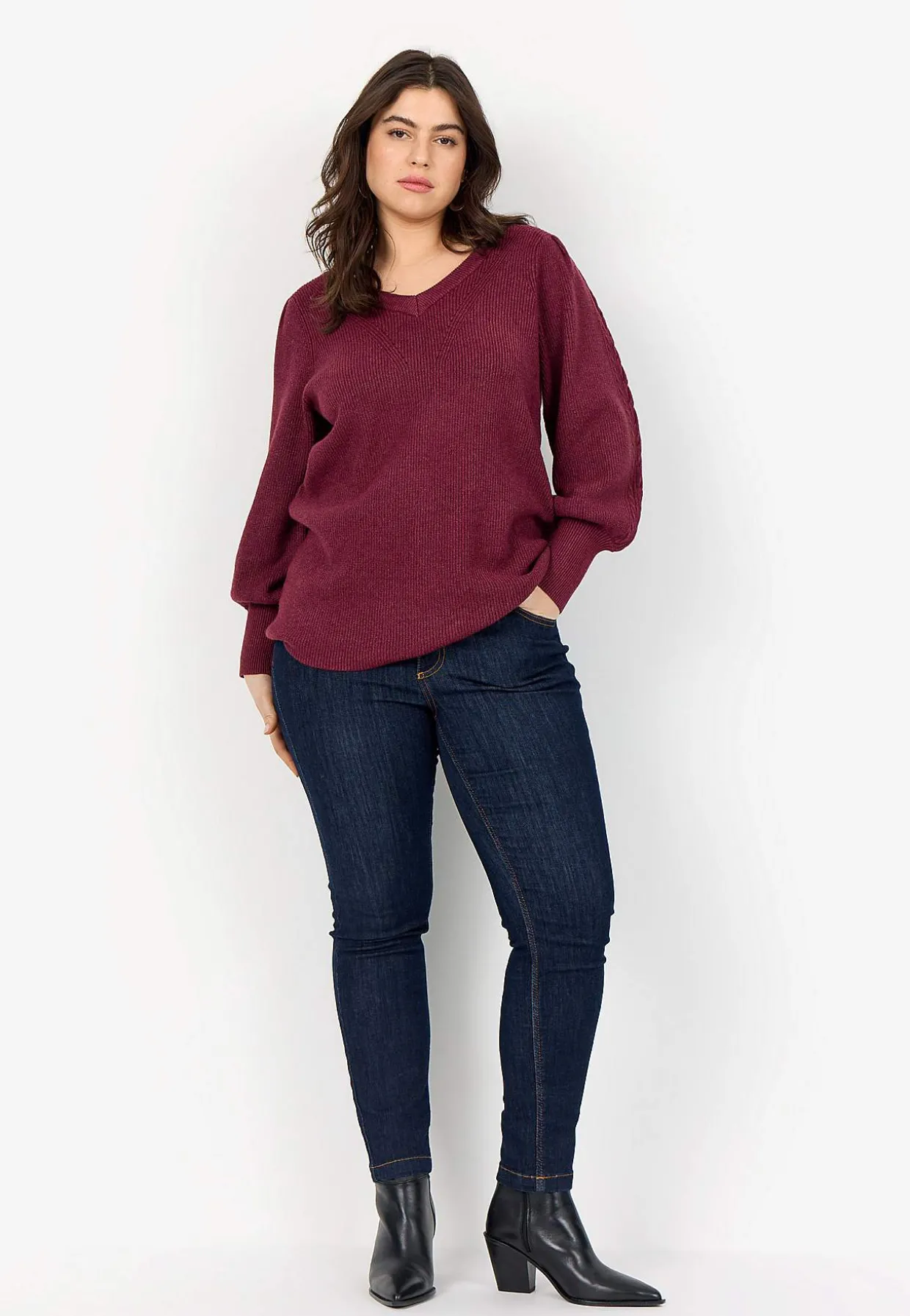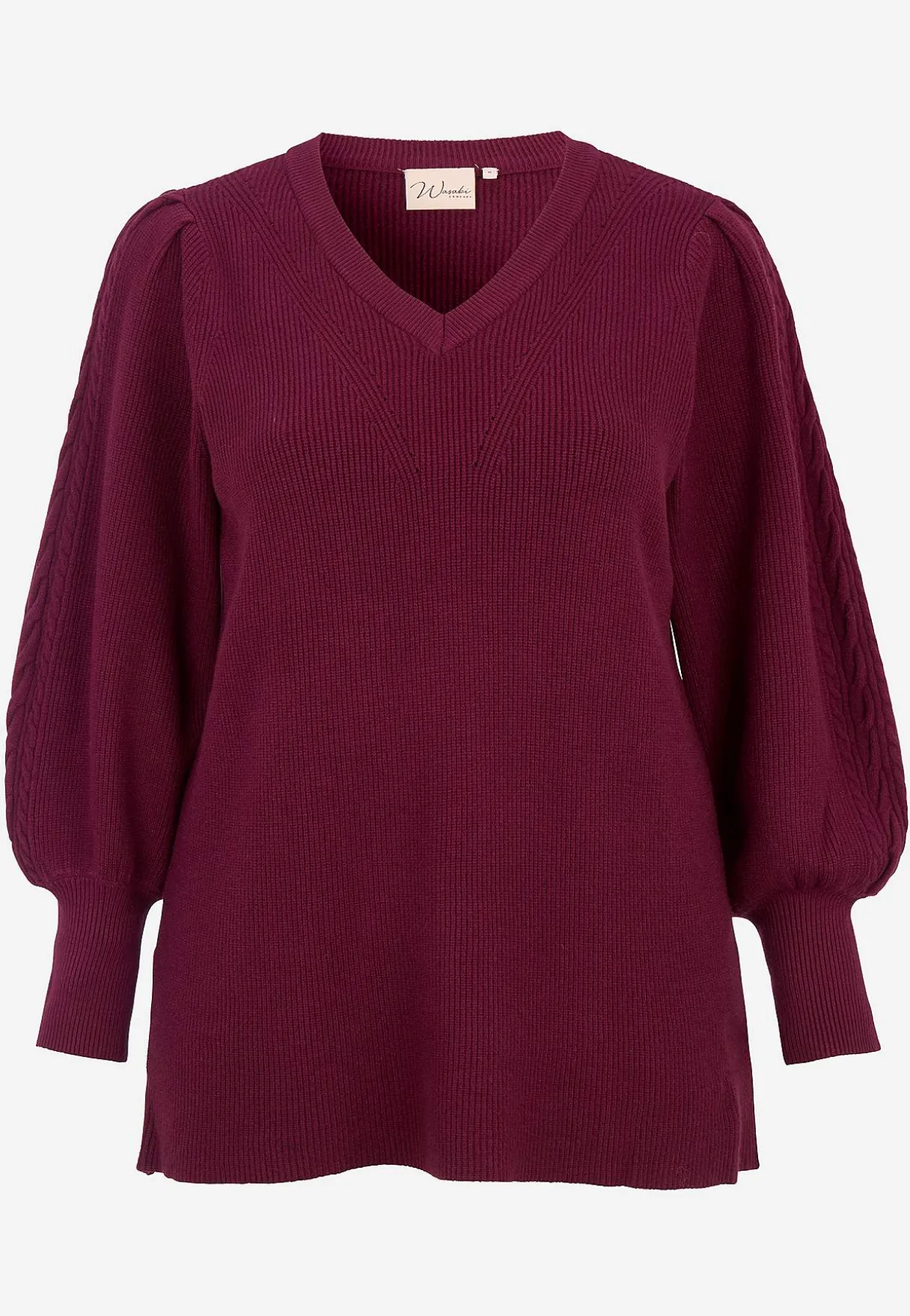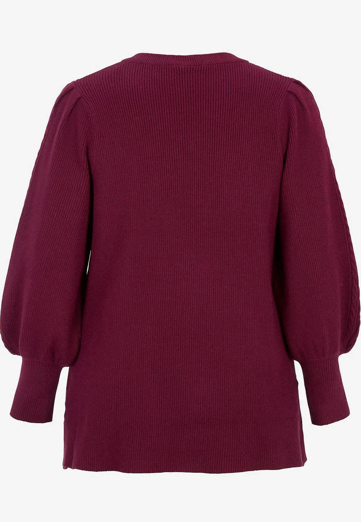 • Langt pufærmer med vidde og kabelstrikkede detaljer.