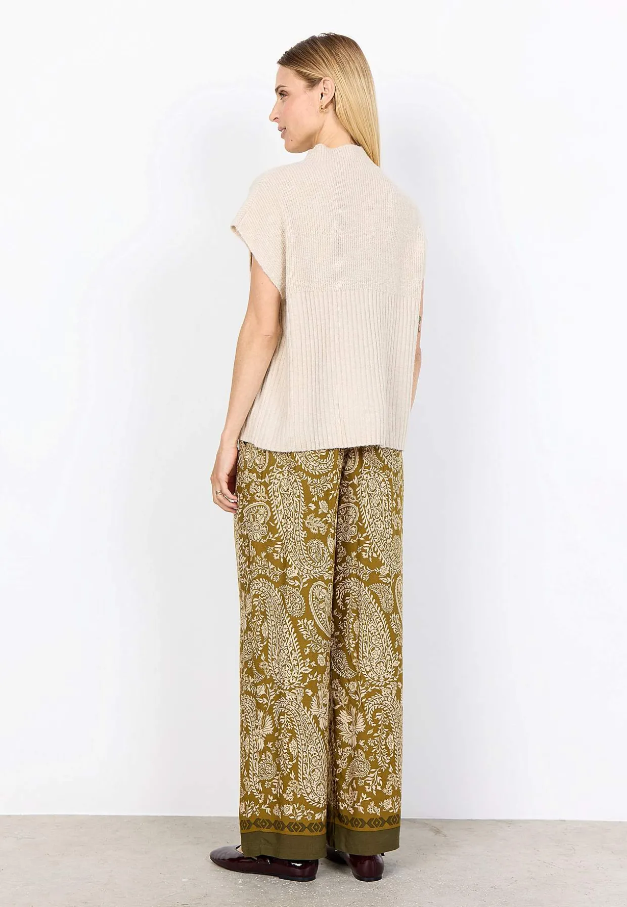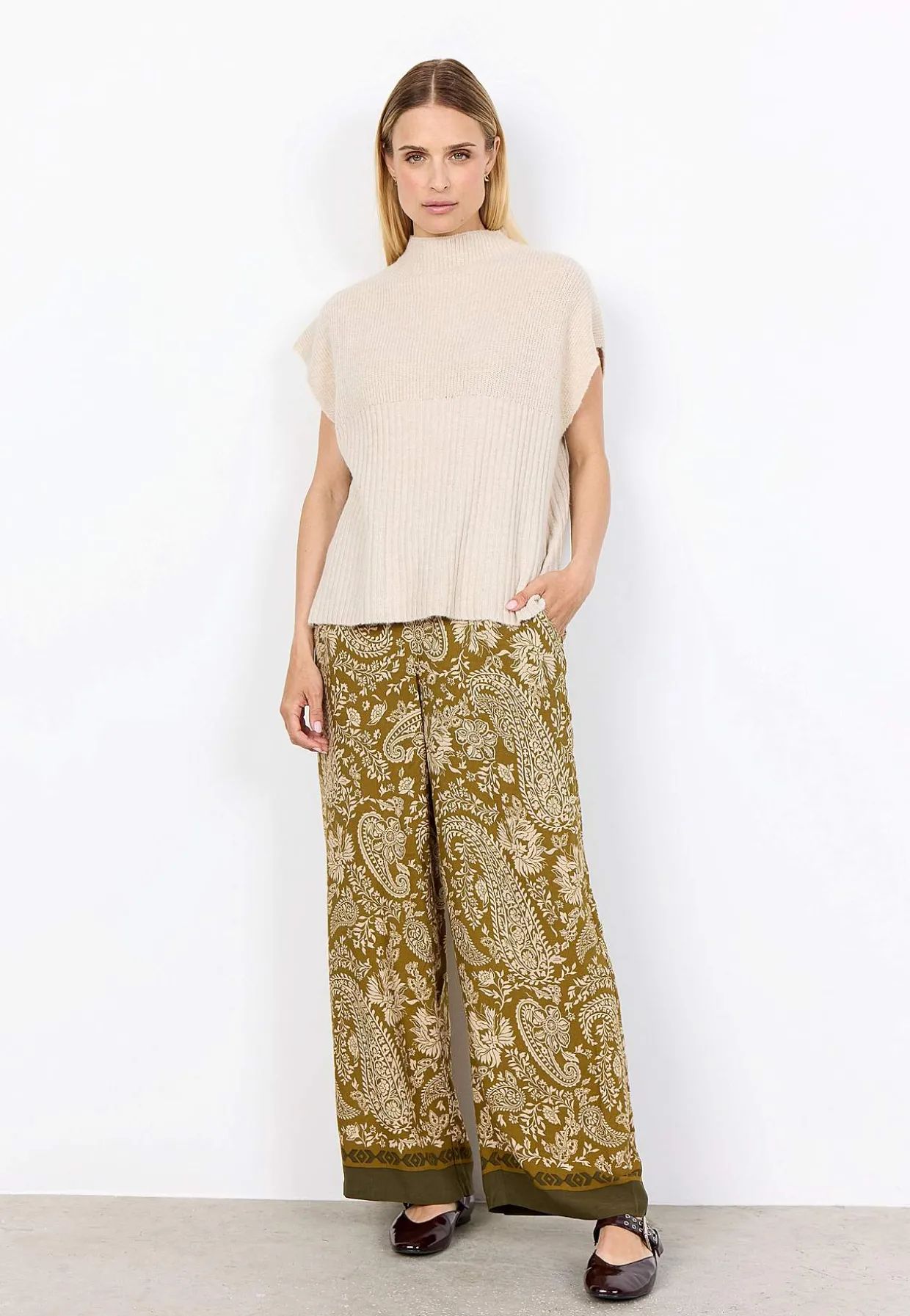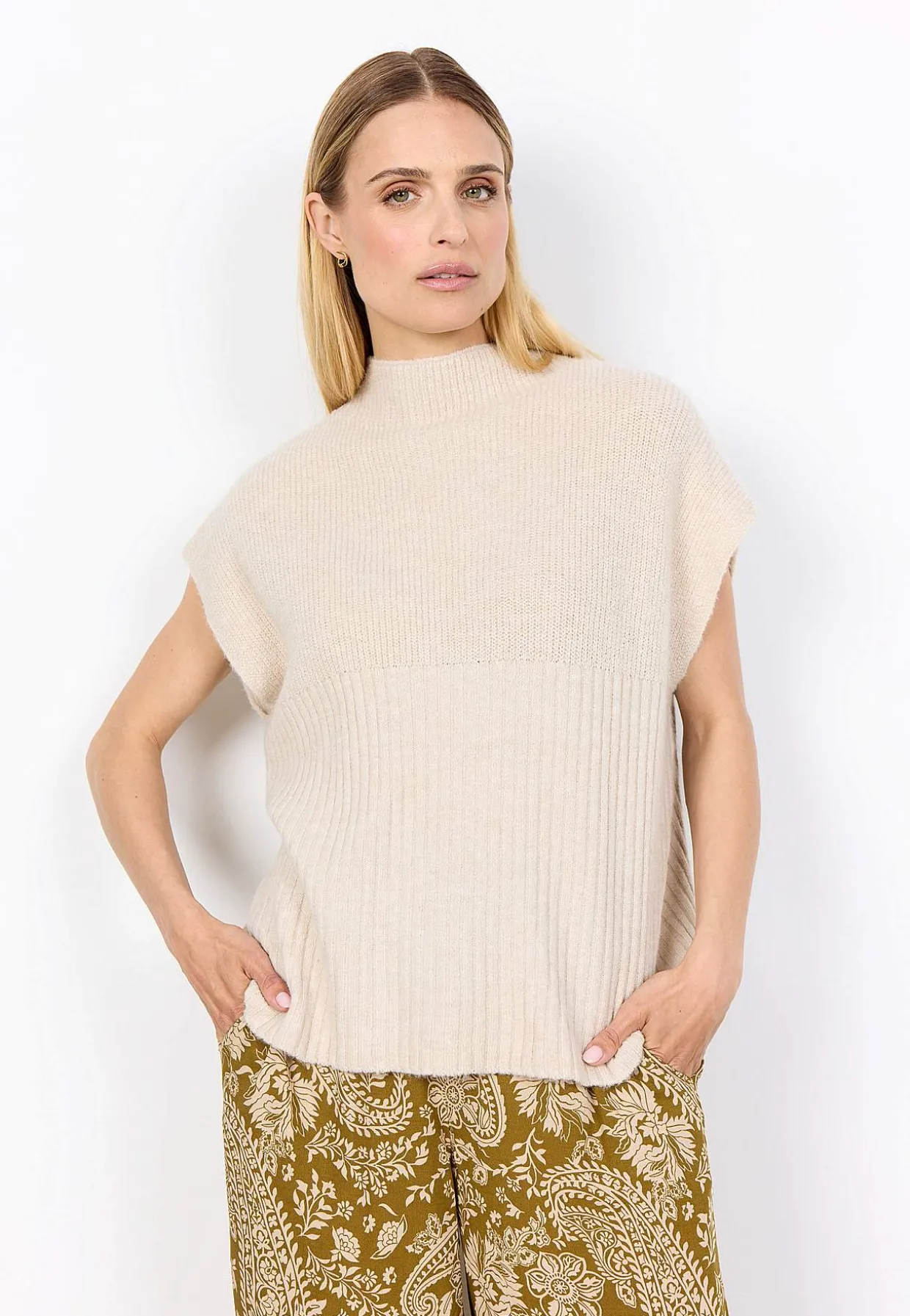 • Blød, ribstrikket vest.