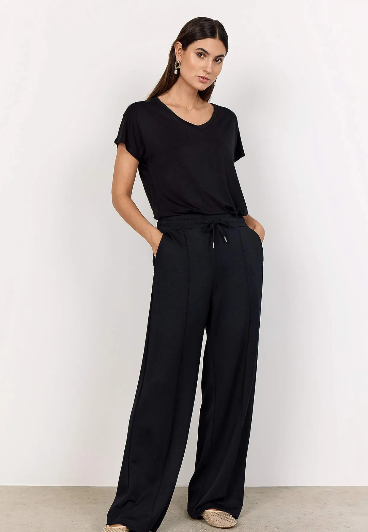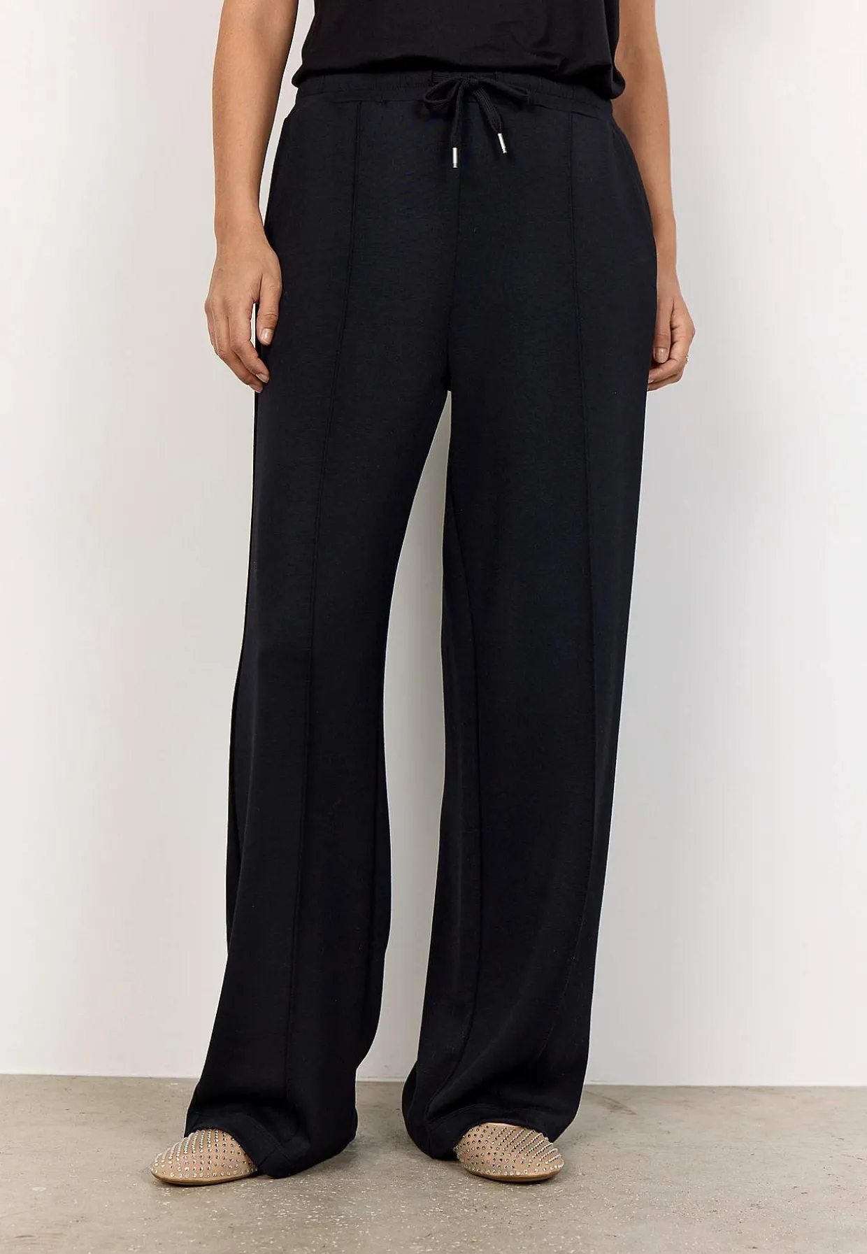 • Elastisk, bred linning med træksnøre.