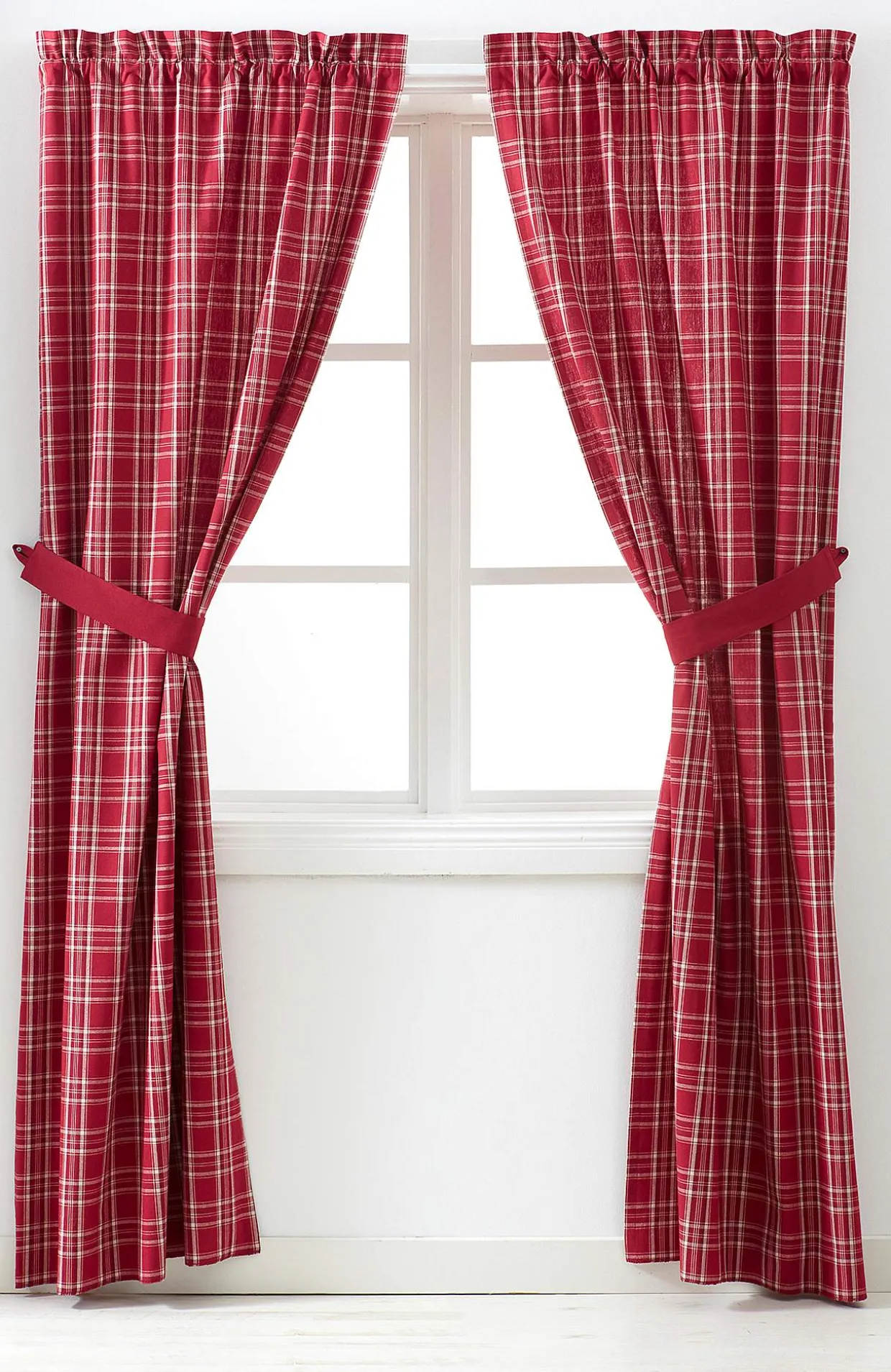 • Ensfarvede gardinsidebånd.