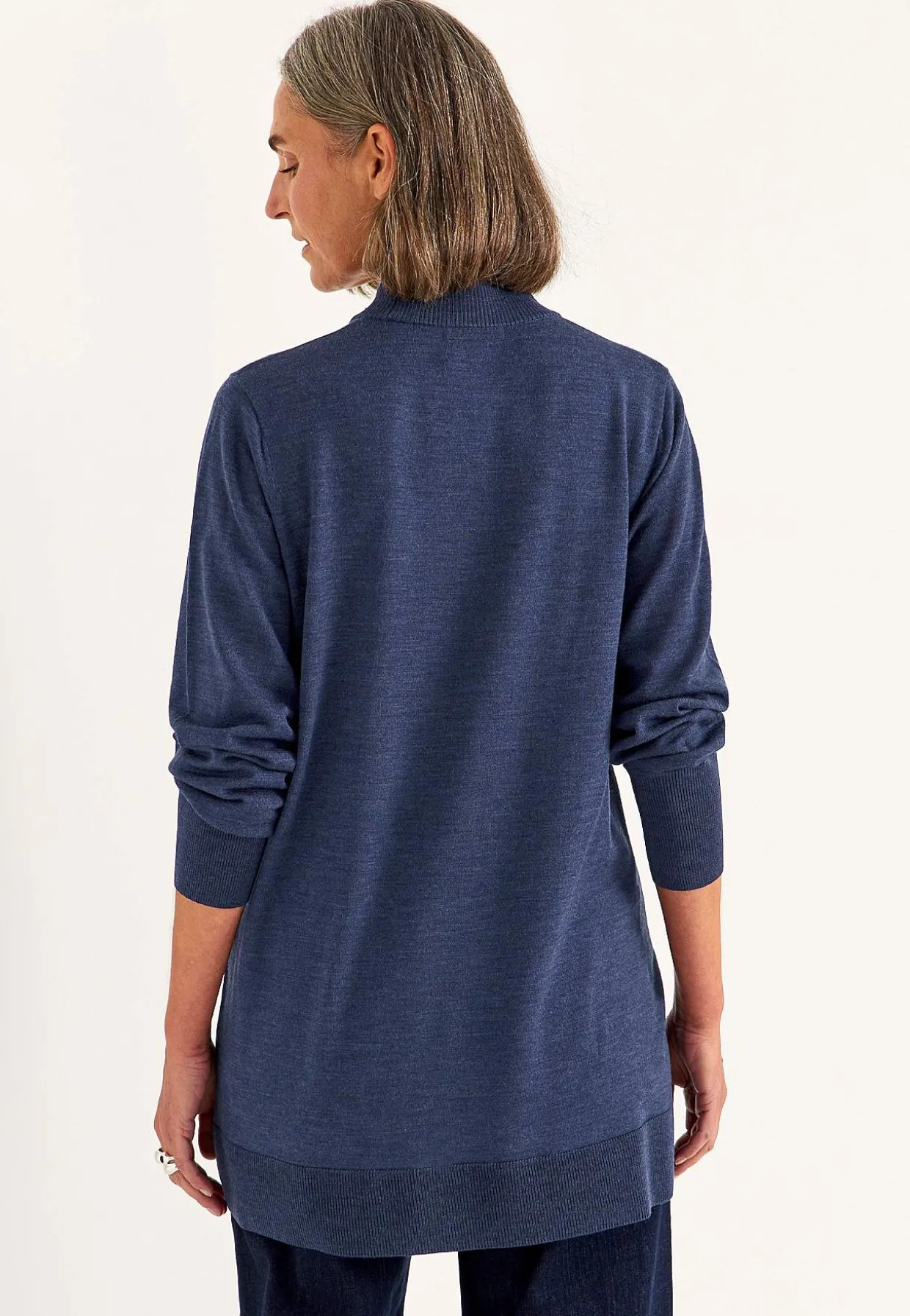 • Lange, brede ærmer med formstrikning.
