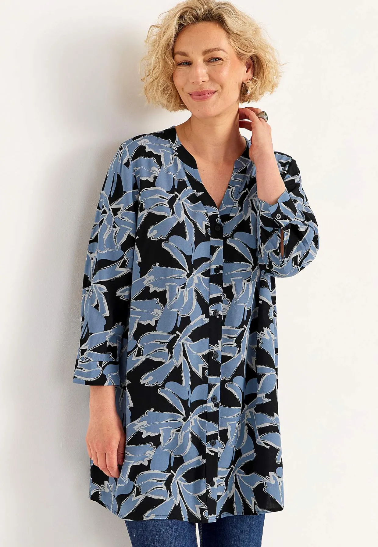 • 3/4 ærme med manchet og knap ved manchetterne.