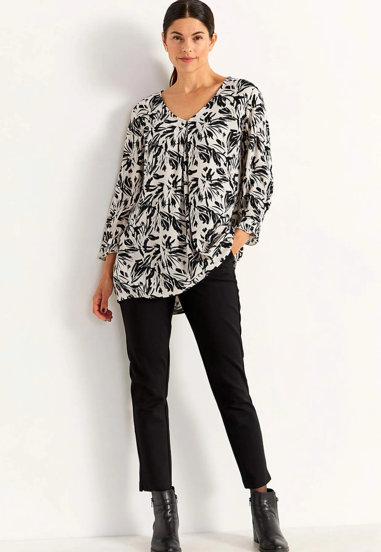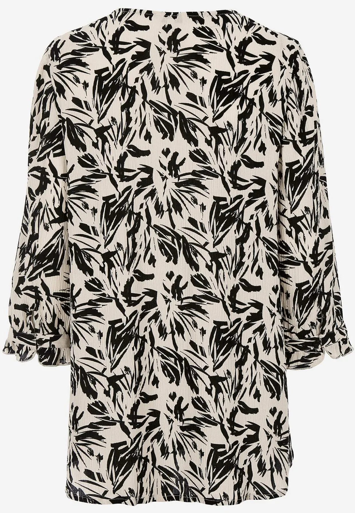 • 3/4 lange ærmer med tynd manchet med knap og romantisk flæsekant.