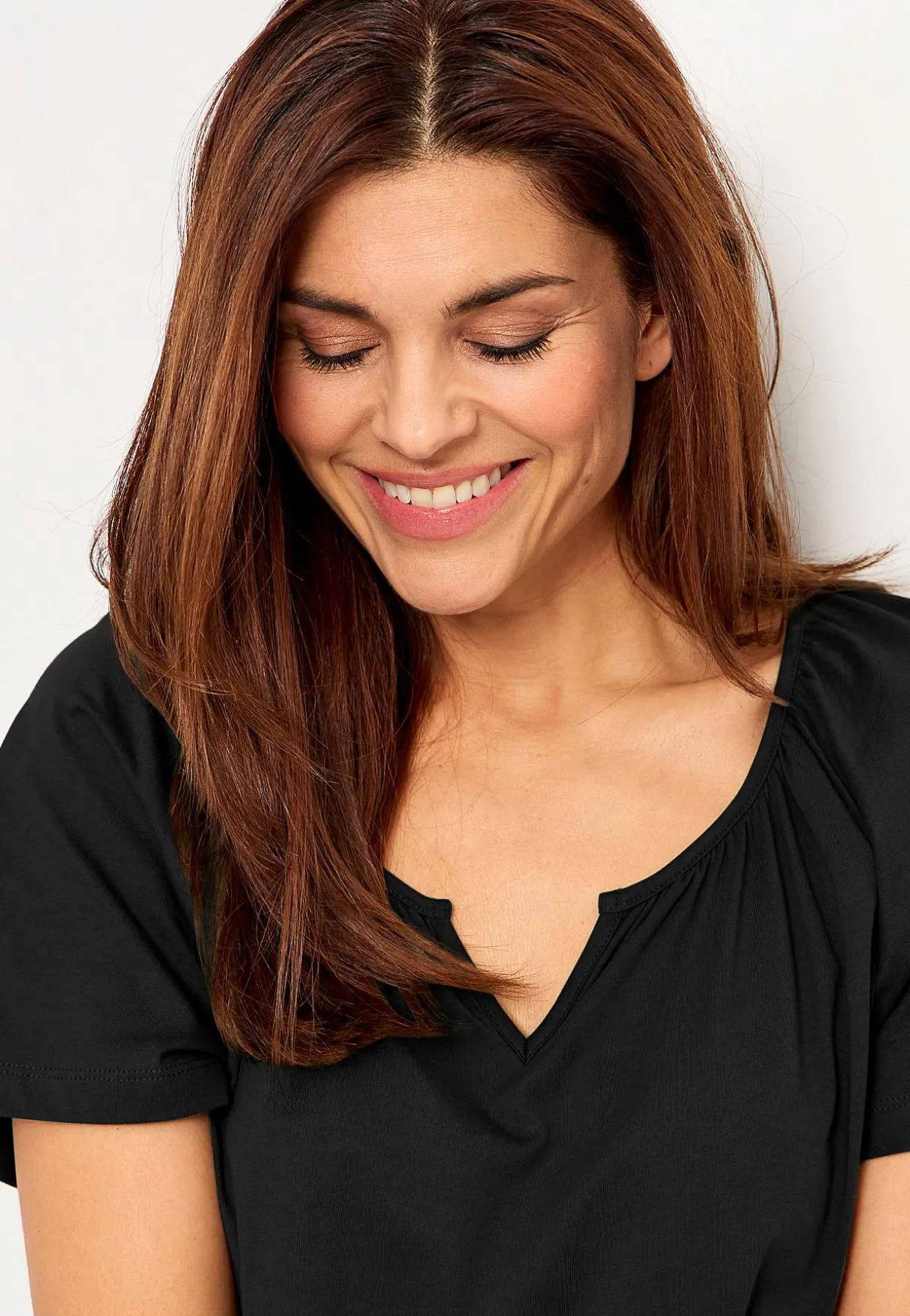 • Rund halsudskæring med lille v-hals foran.