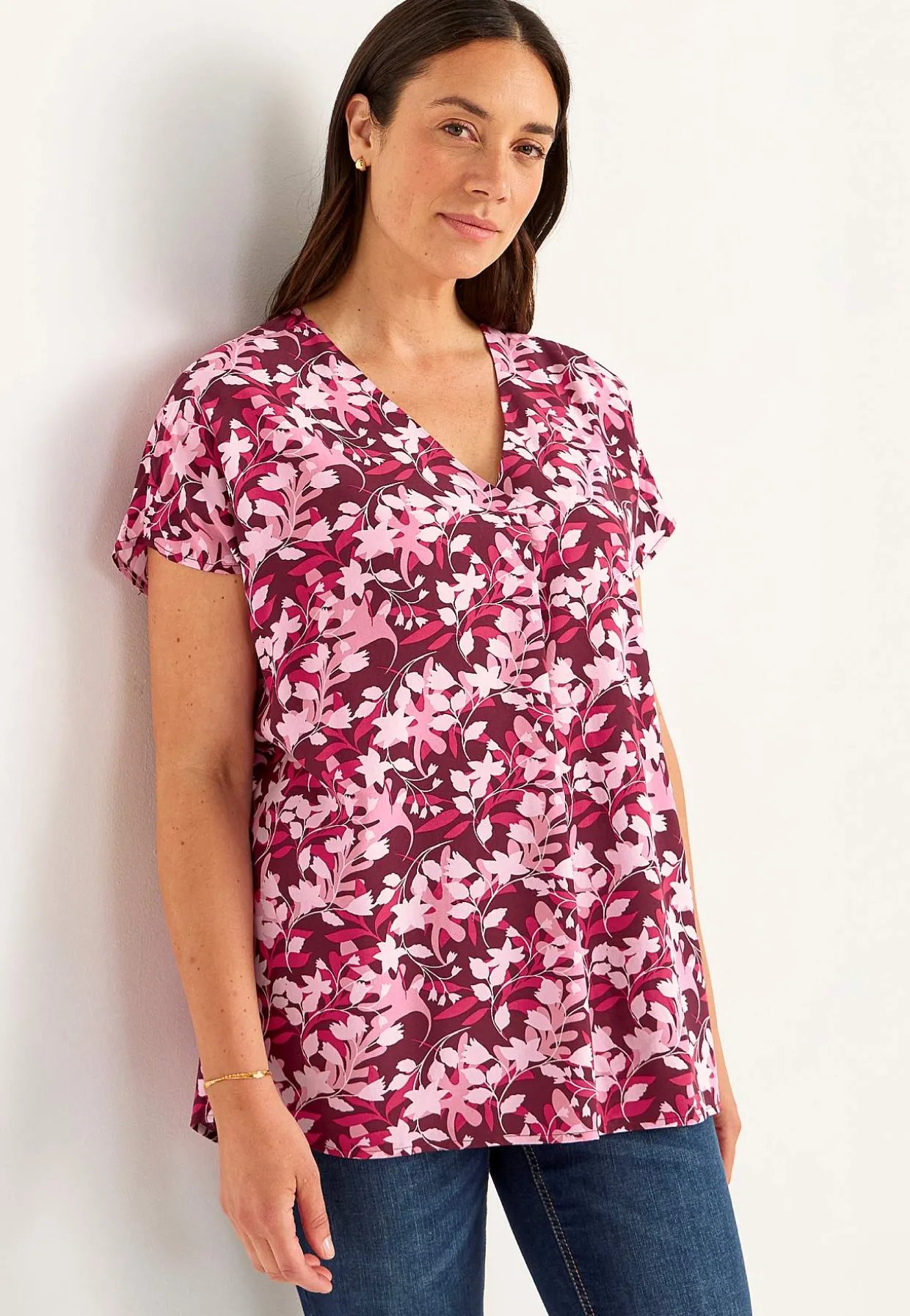• V-udskåret halsudskæring med dekorativt læg foran.