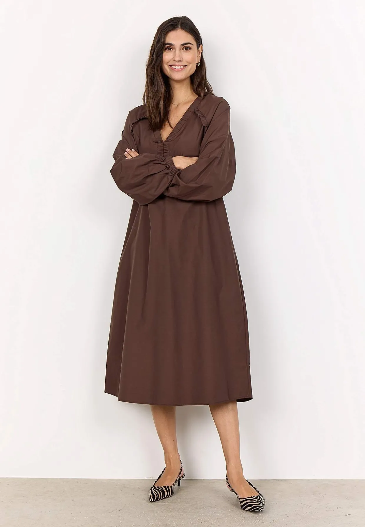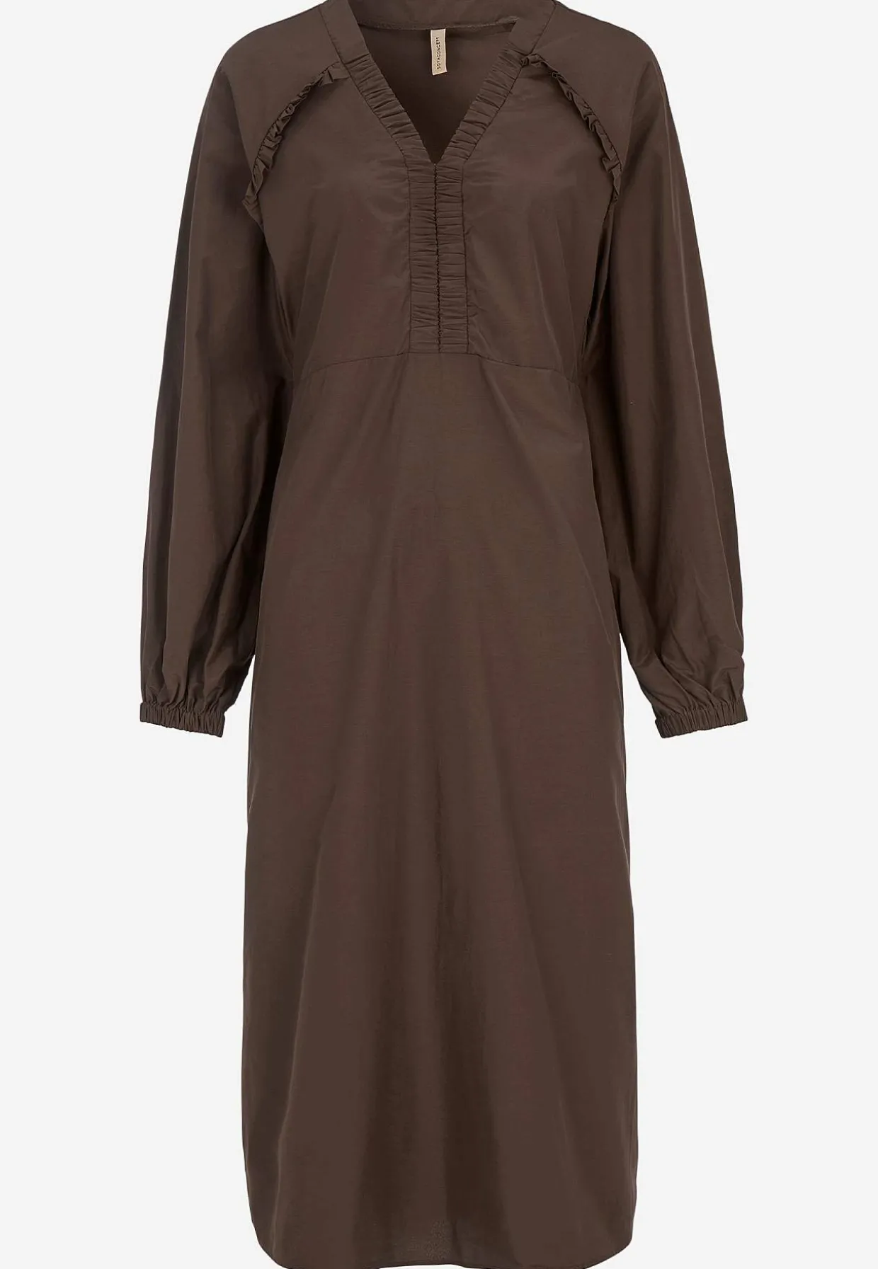 • V-udskæring med rynket detalje.