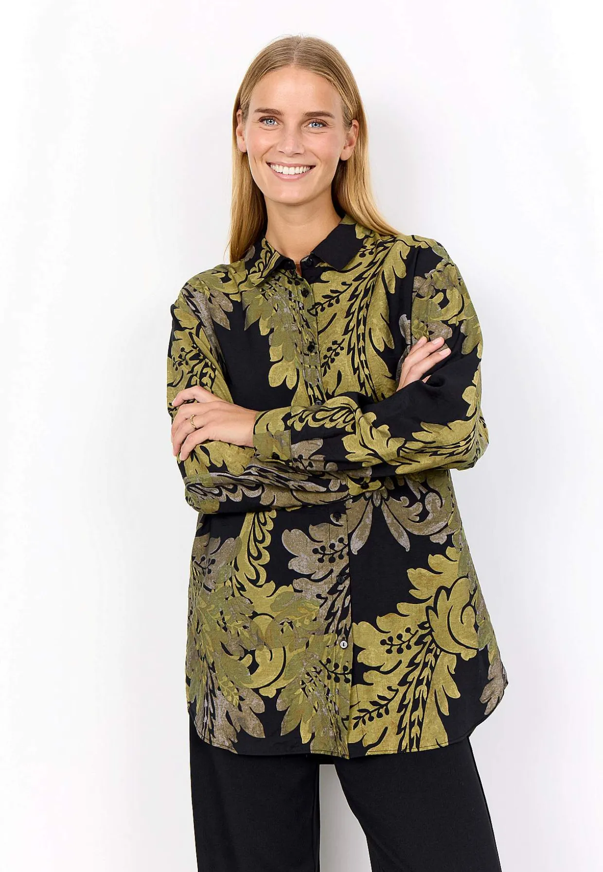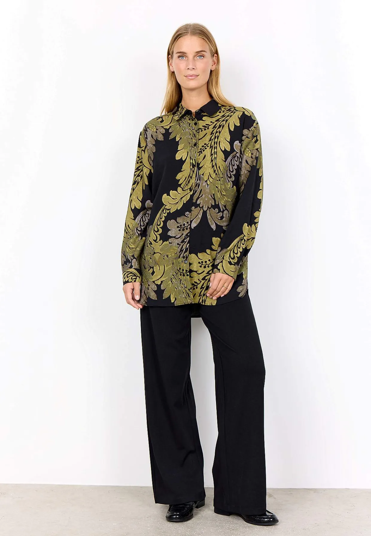 • Noget længere skjorte i kølende viskoseblanding med glans.