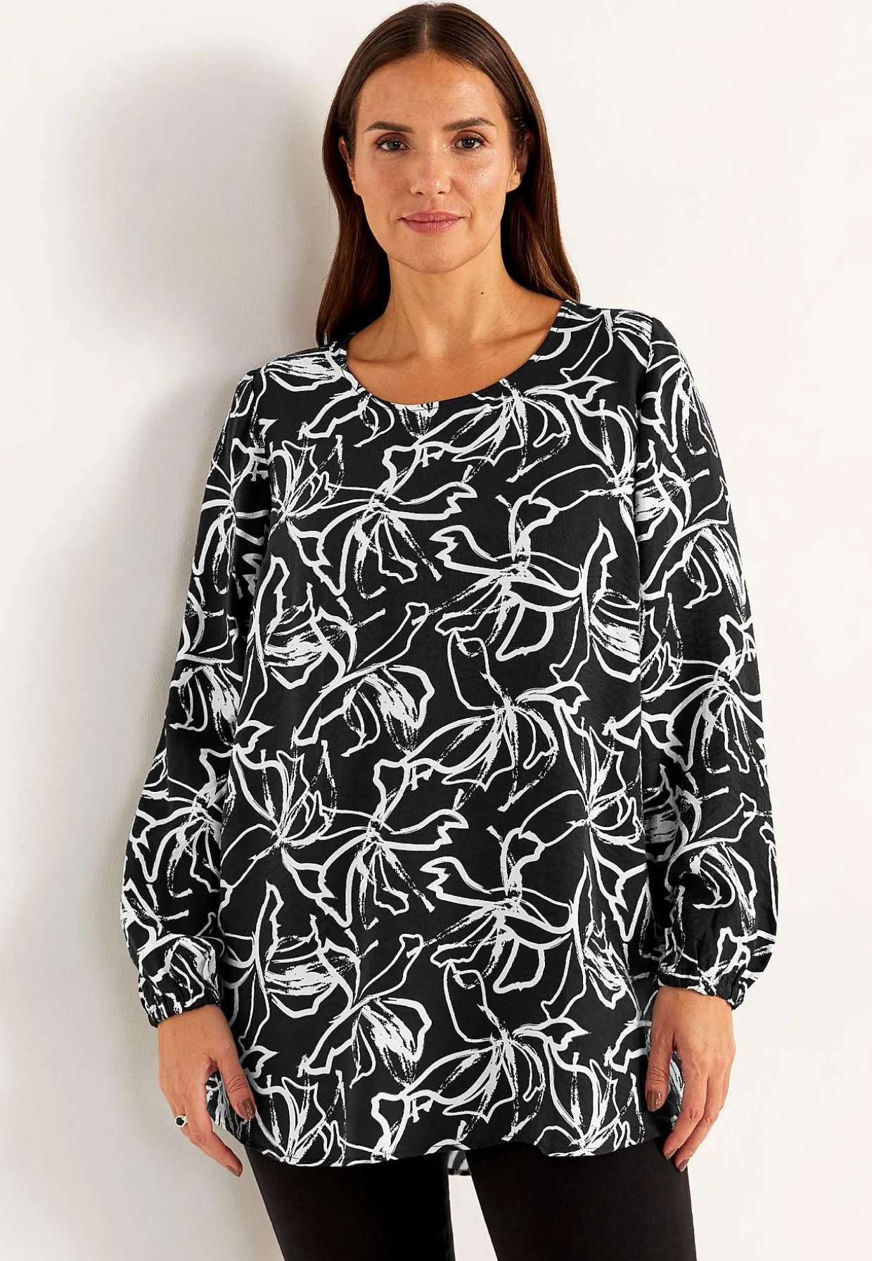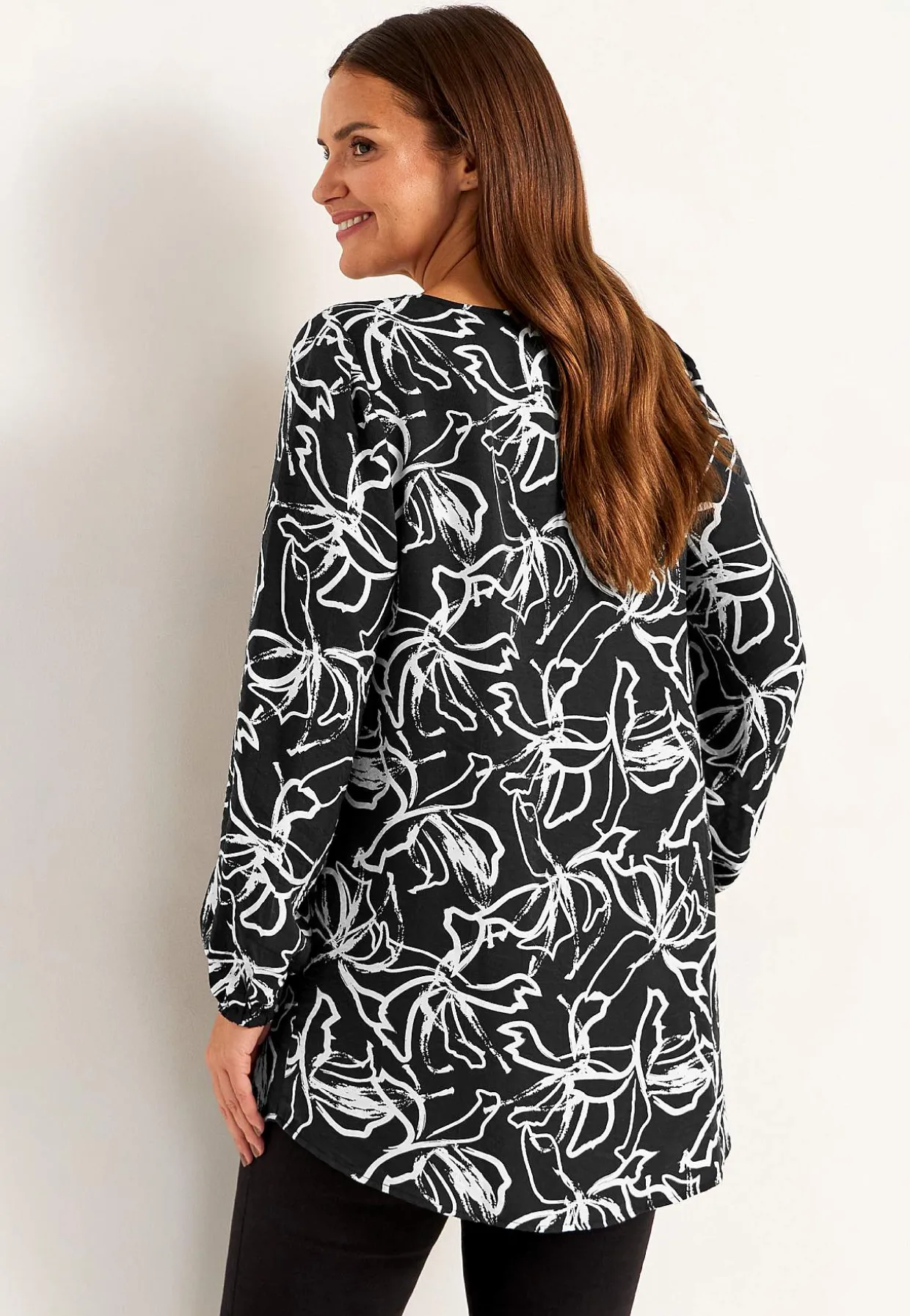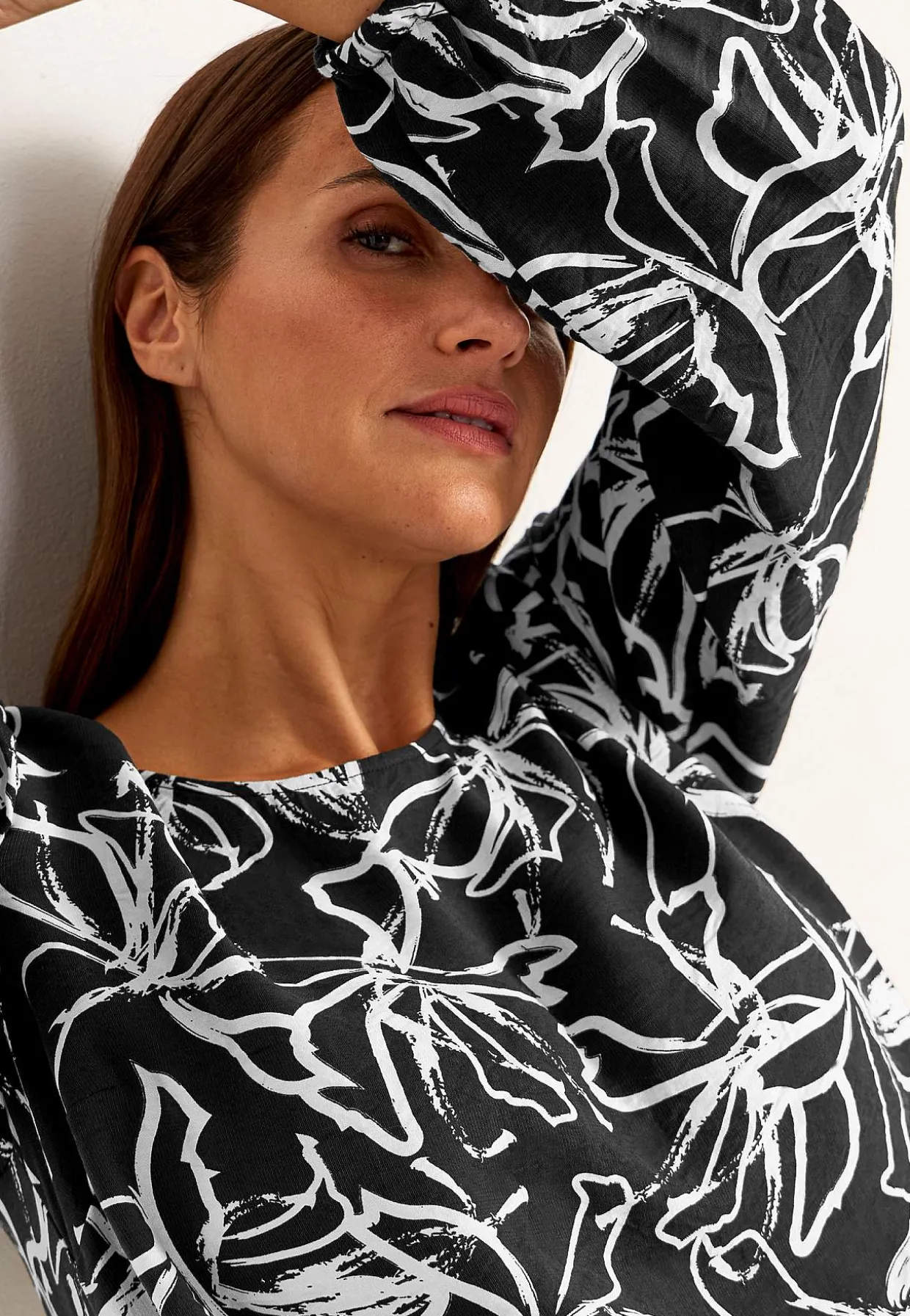 • Lange, brede ærmer med elastik ved manchetterne.