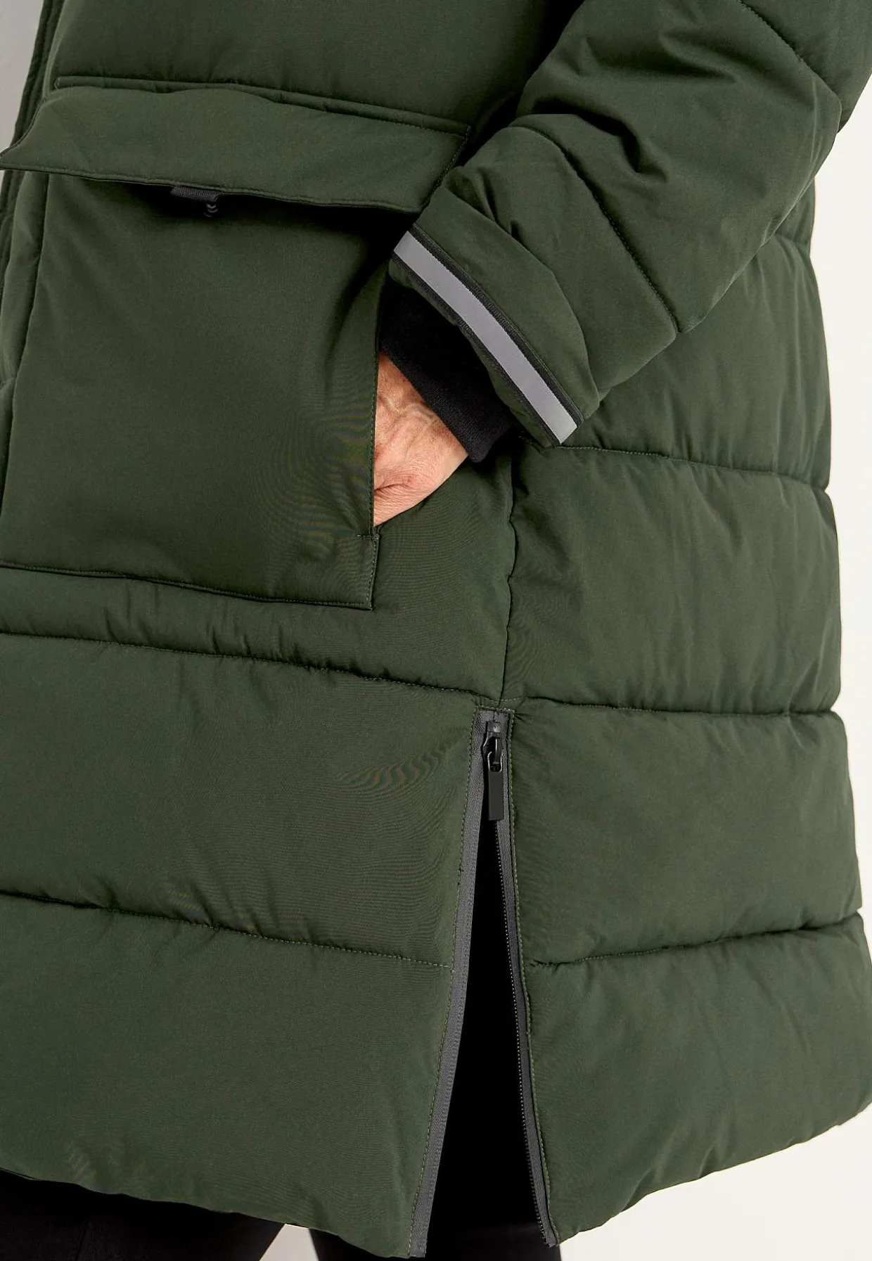 • Lange ærmer med ribstrikket ribkant ved manchetterne.