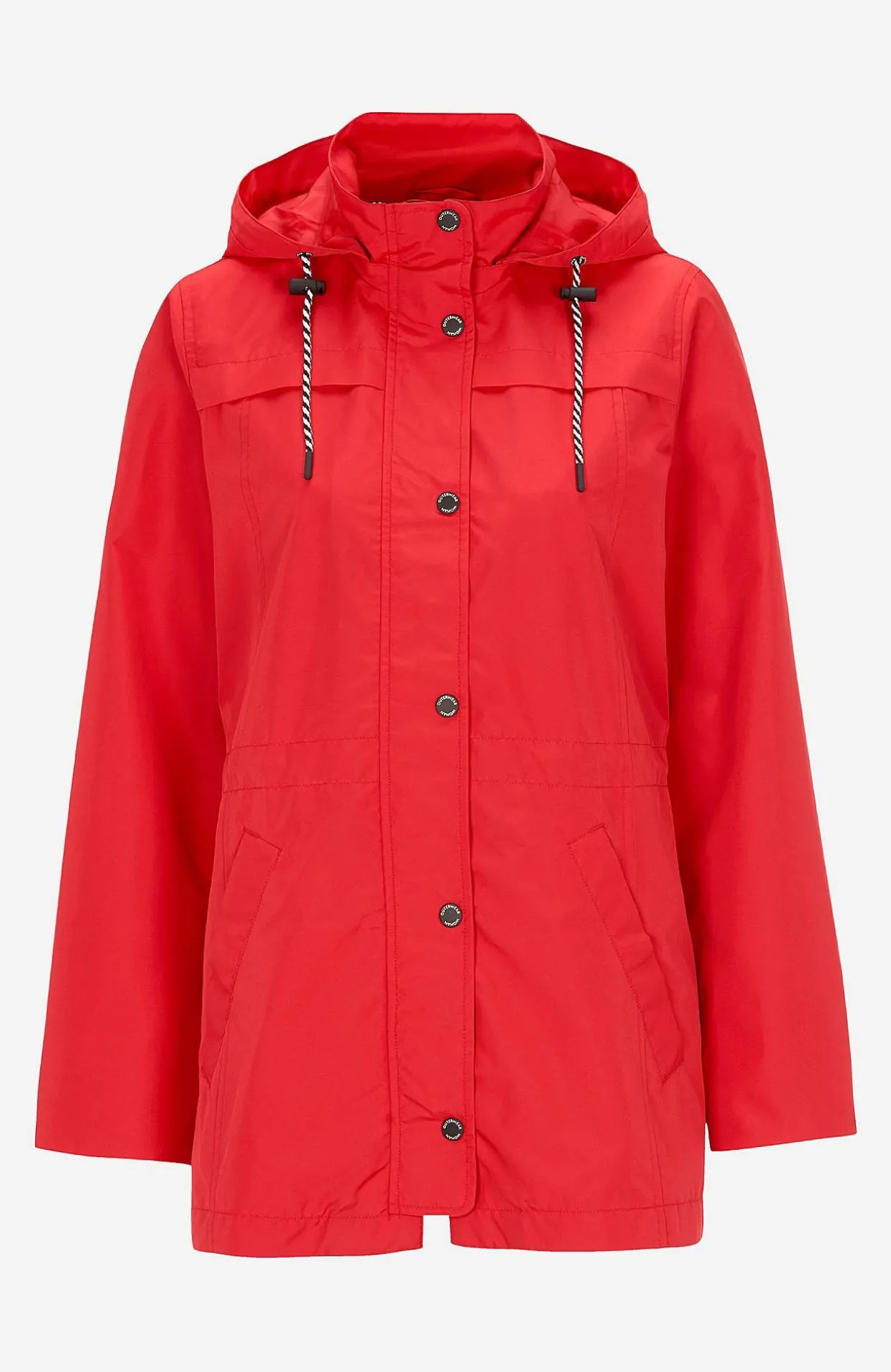 • Vindtæt jakke med aftagelig hætte og justérbar talje.